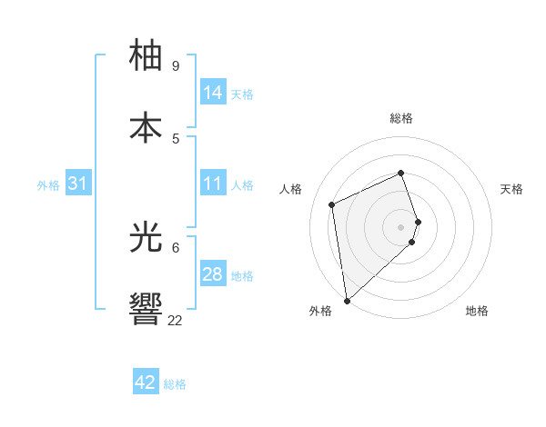 柚本 光響さんを姓名の画数から五運を鑑定