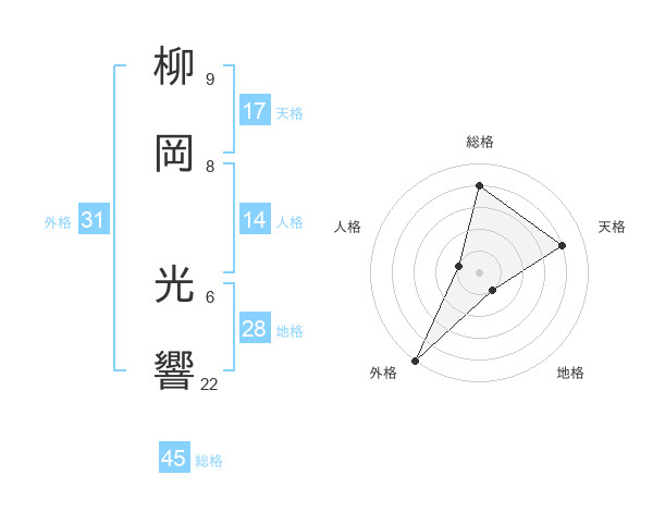 柳岡 光響さんを姓名の画数から五運を鑑定