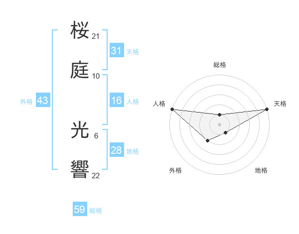 桜庭 光響さんの総格は59画の1点!