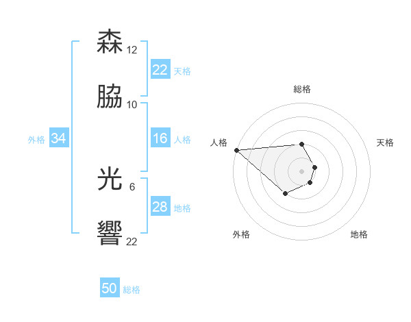 森脇 光響さんの総格は50画の2点!