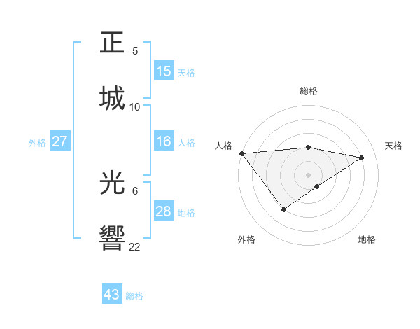 正城 光響さんの天格は15画の4点!