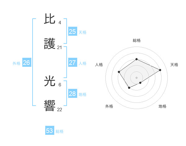 比護 光響さんの天格は25画の4点!
