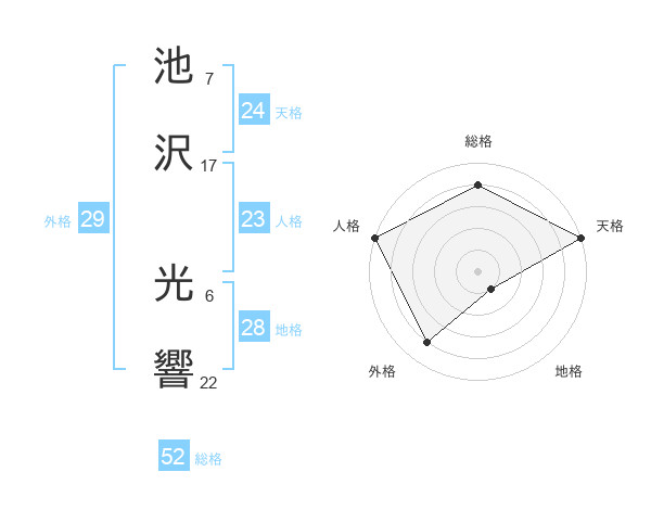 池沢 光響さんの総格は52画の4点!