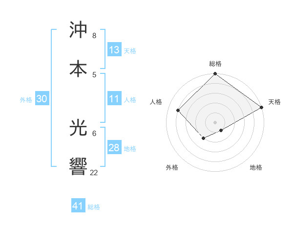 沖本 光響さんの天格は13画の5点!