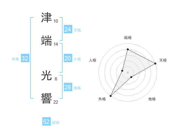 津端 光響さんの総格は52画の4点!