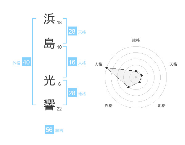 浜島 光響さんの総格は56画の1点!