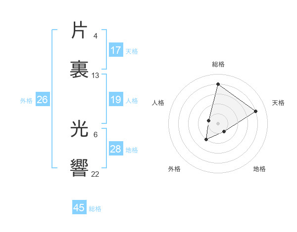 片裏 光響さんの天格は17画の4点!