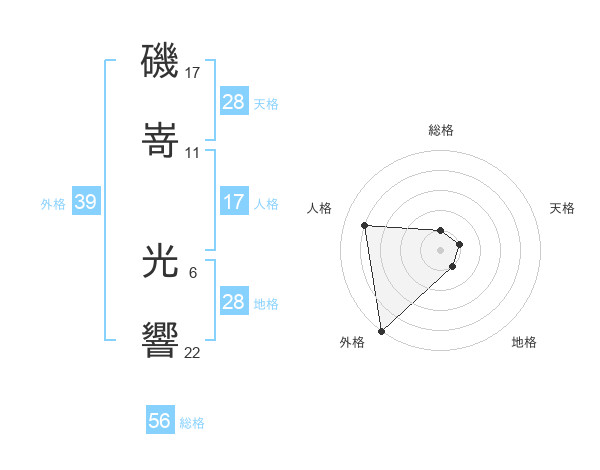 磯嵜 光響さんを姓名の画数から五運を鑑定