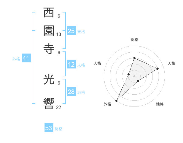 西園寺 光響さんの天格は25画の4点!