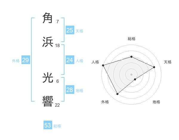 角浜 光響さんの総格は53画の3点!