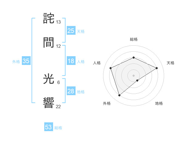 詫間 光響さんの天格は25画の4点!