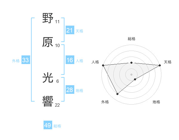 野原 光響さんの天格は21画の5点!