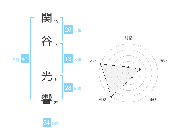 関谷 光響さんを姓名の画数から五運を鑑定