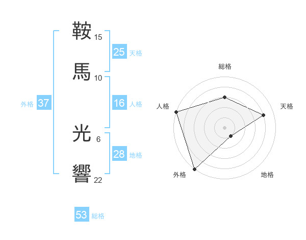 鞍馬 光響さんの総格は53画の3点!