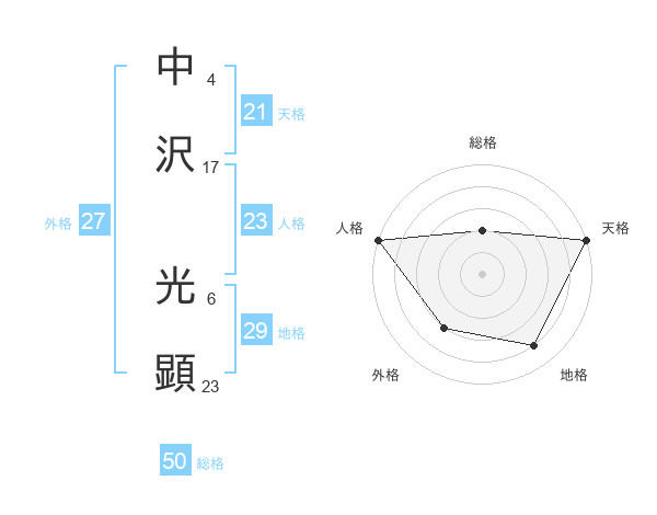 中沢 光顕さんの天格は21画の5点!
