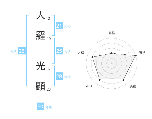 人羅 光顕さんの天格は21画の5点!