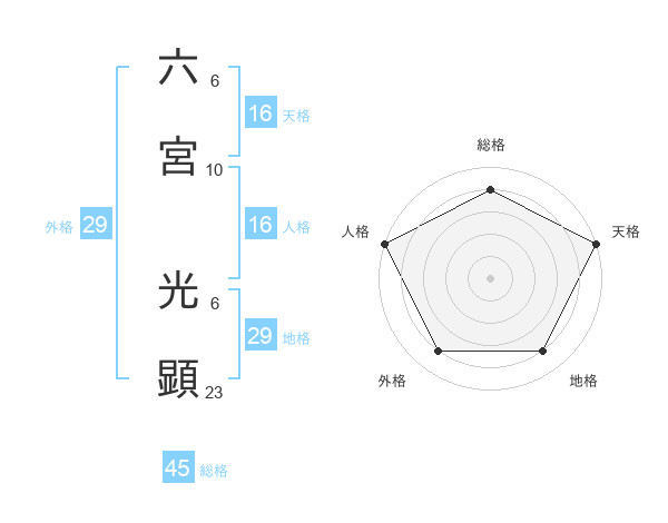 六宮 光顕さんの総格は45画の4点!