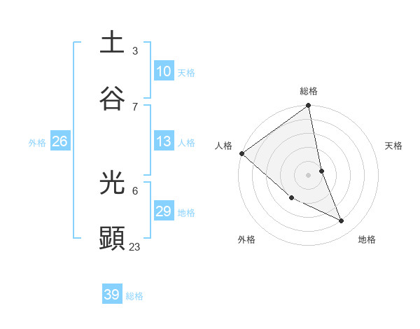 土谷 光顕さんを姓名の画数から五運を鑑定