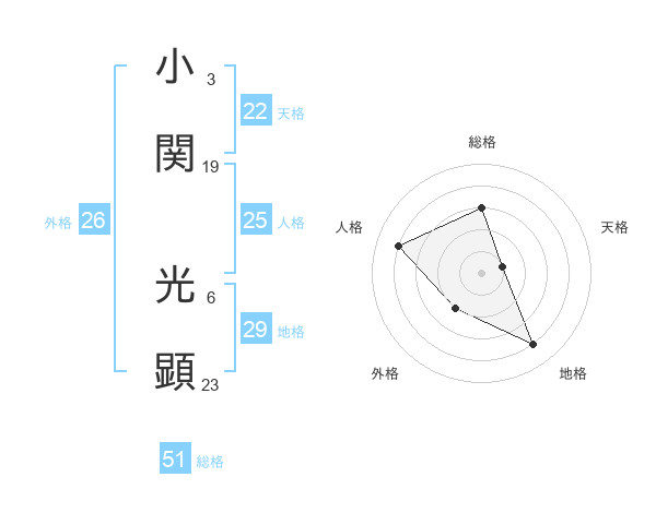 小関 光顕さんの総格は51画の3点