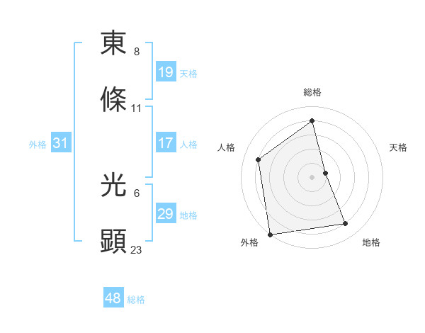 東條 光顕さんの外格は31画の5点!