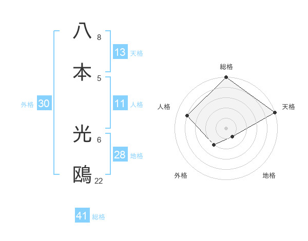 八本 光鴎さんを姓名の画数から五運を鑑定