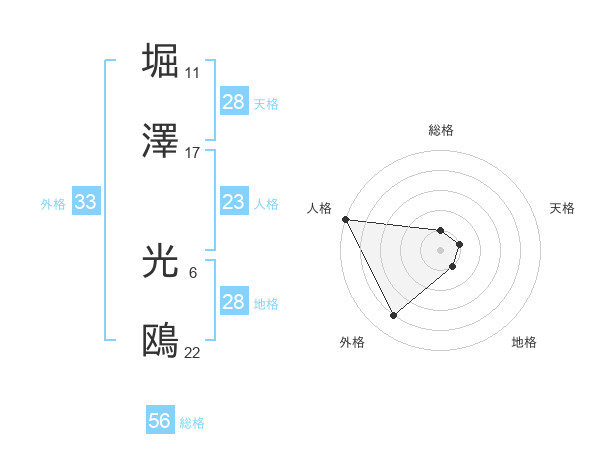 堀澤 光鴎さんを姓名の画数から五運を鑑定