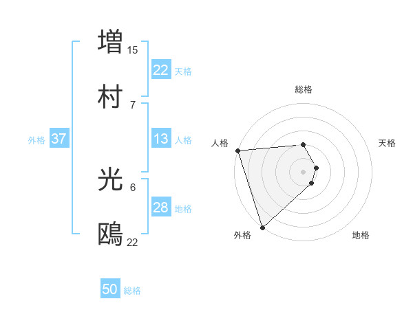 増村 光鴎さんの総格は50画の2点!