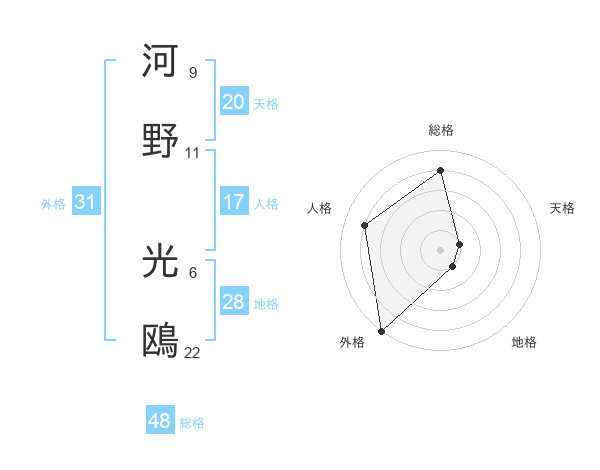 河野 光鴎さんを姓名の画数から五運を鑑定