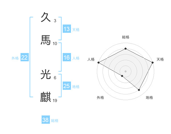 久馬 光麒さんの総格は38画の4点!
