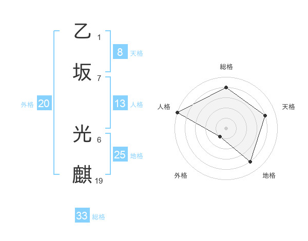 乙坂 光麒さんを姓名の画数から五運を鑑定