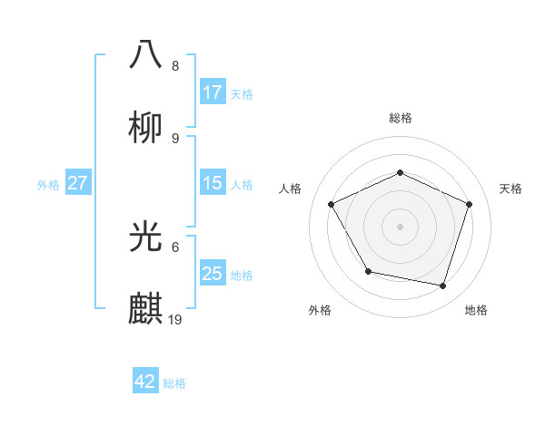 八柳 光麒さんを姓名の画数から五運を鑑定