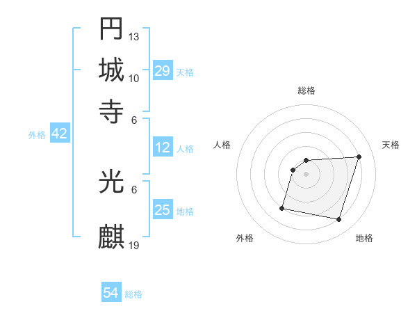 円城寺 光麒さんの天格は29画の4点!