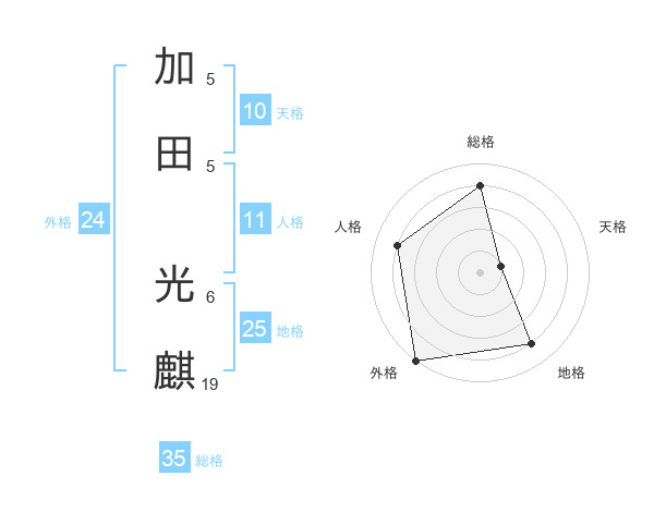 加田 光麒さんを姓名の画数から五運を鑑定