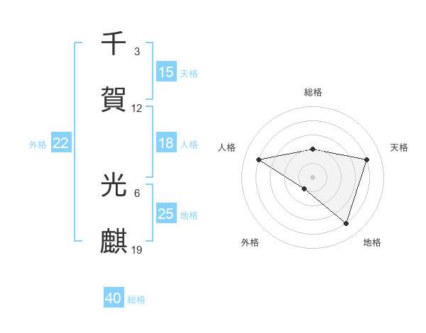 千賀 光麒さんを姓名の画数から五運を鑑定