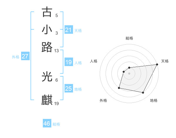 古小路 光麒さんを姓名の画数から五運を鑑定