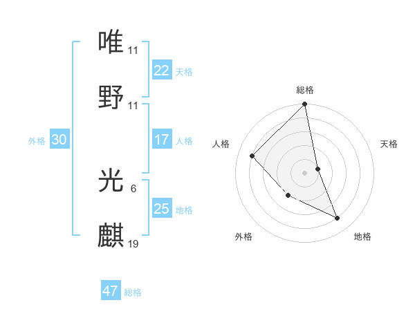 唯野 光麒さんの総格は47画の5点!
