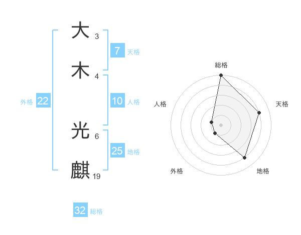 大木 光麒さんの総格は32画の5点!