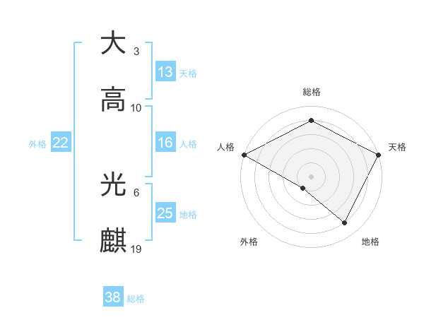 大高 光麒さんの総格は38画の4点!