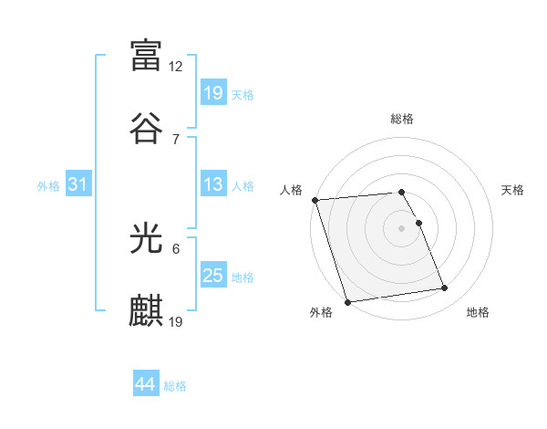 富谷 光麒さんの総格は44画の2点!