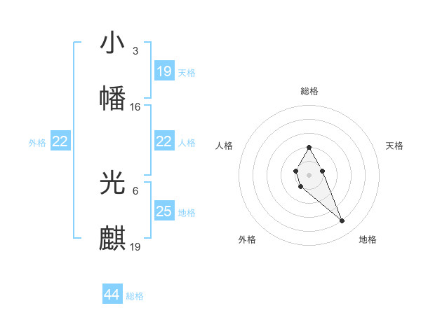 小幡 光麒さんを姓名の画数から五運を鑑定