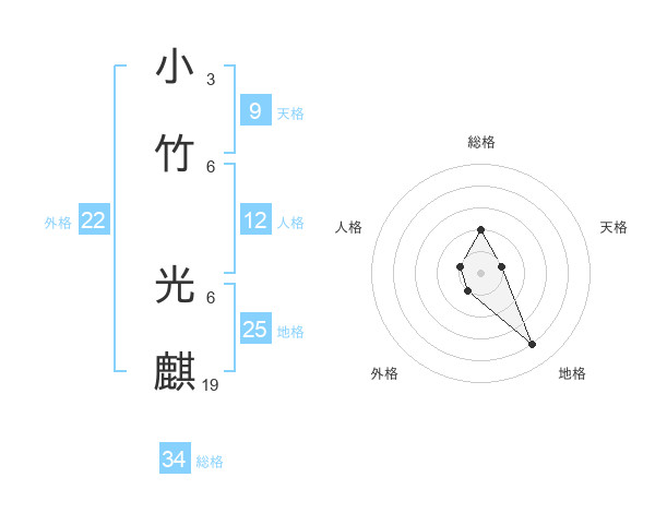 小竹 光麒さんの総格は34画の2点!