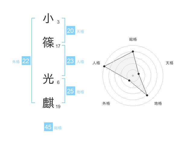 小篠 光麒さんの総格は45画の4点!