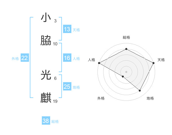 小脇 光麒さんを姓名の画数から五運を鑑定
