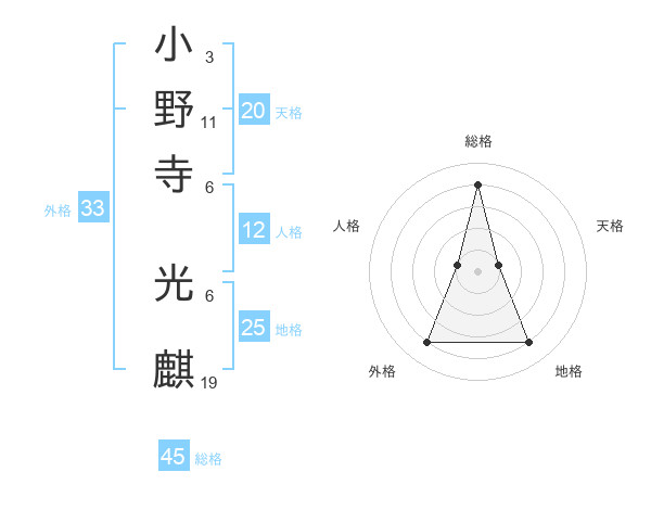 小野寺 光麒さんを姓名の画数から五運を鑑定