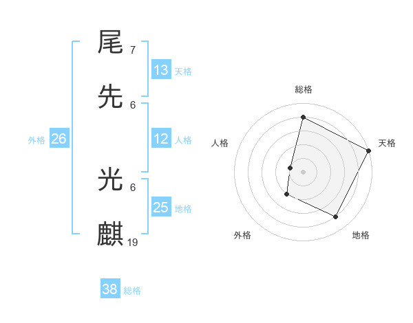 尾先 光麒さんの総格は38画の4点!