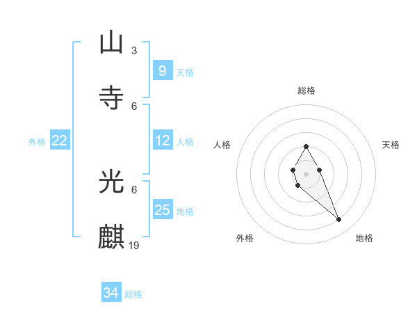 山寺 光麒さんを姓名の画数から五運を鑑定
