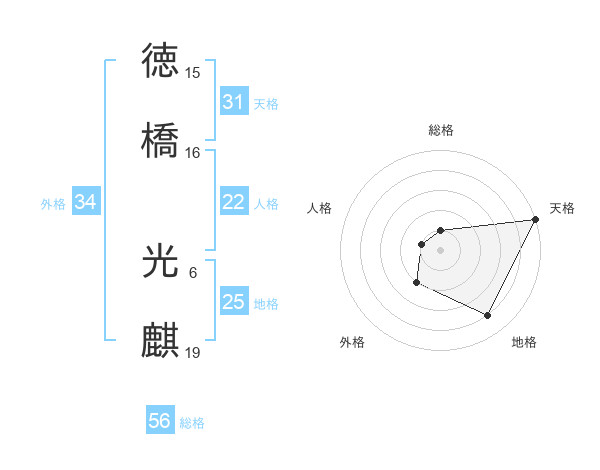 徳橋 光麒さんを姓名の画数から五運を鑑定