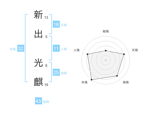 新出 光麒さんの外格は32画の5点!