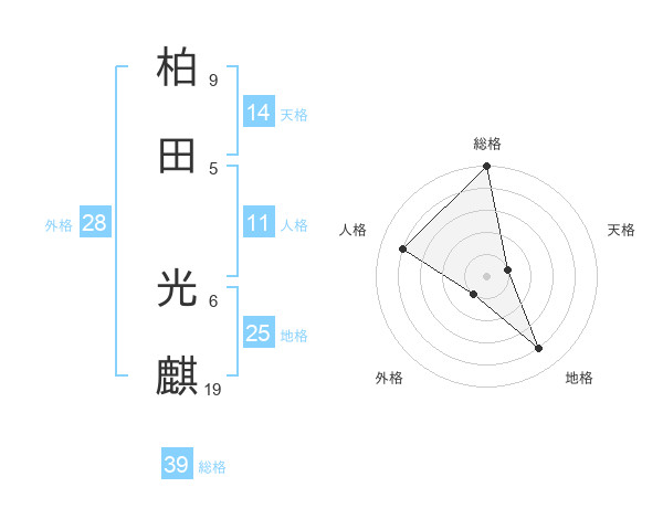 柏田 光麒さんを姓名の画数から五運を鑑定