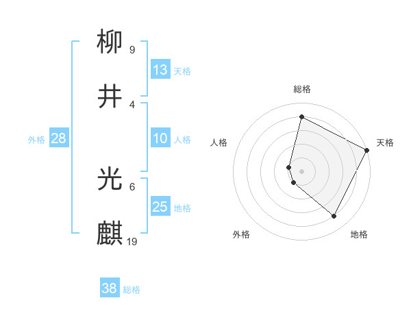 柳井 光麒さんの天格は13画の5点!